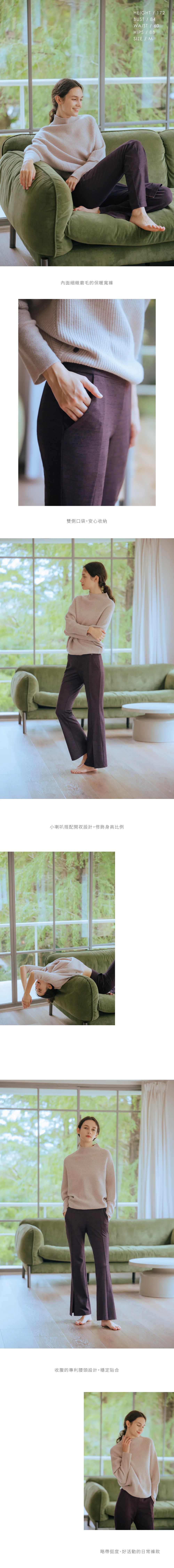 內面細緻磨毛的保暖寬褲