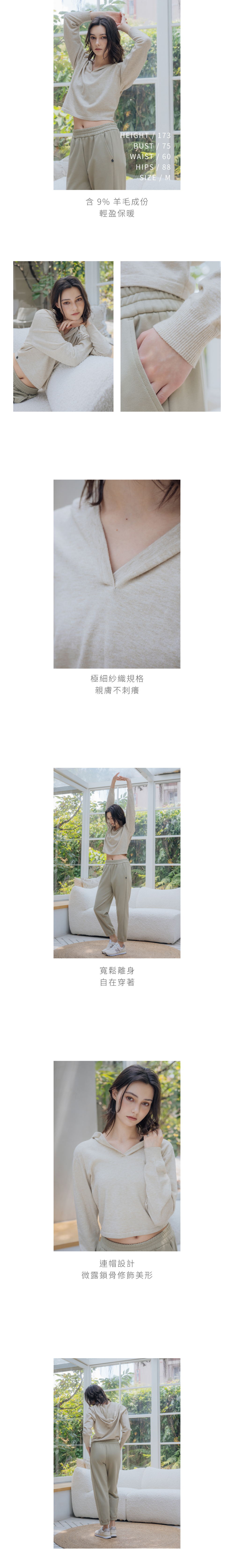 含9%羊毛成份,輕盈保暖