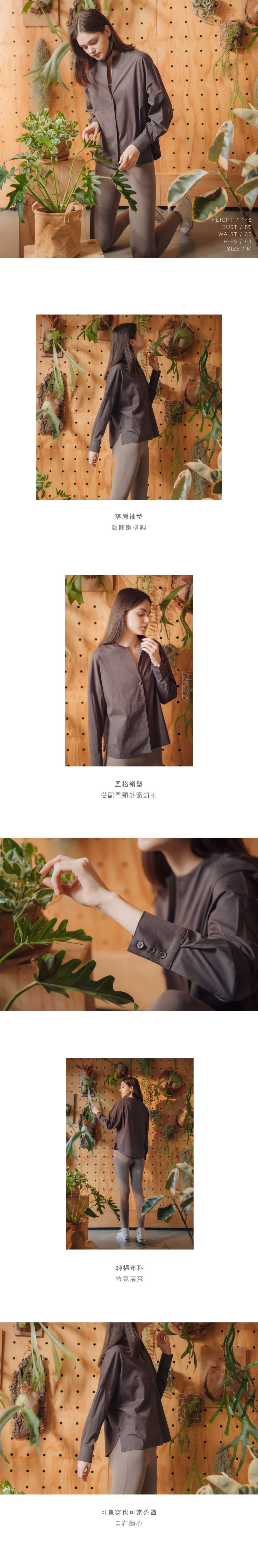風格領型、搭配單顆外露鈕扣
